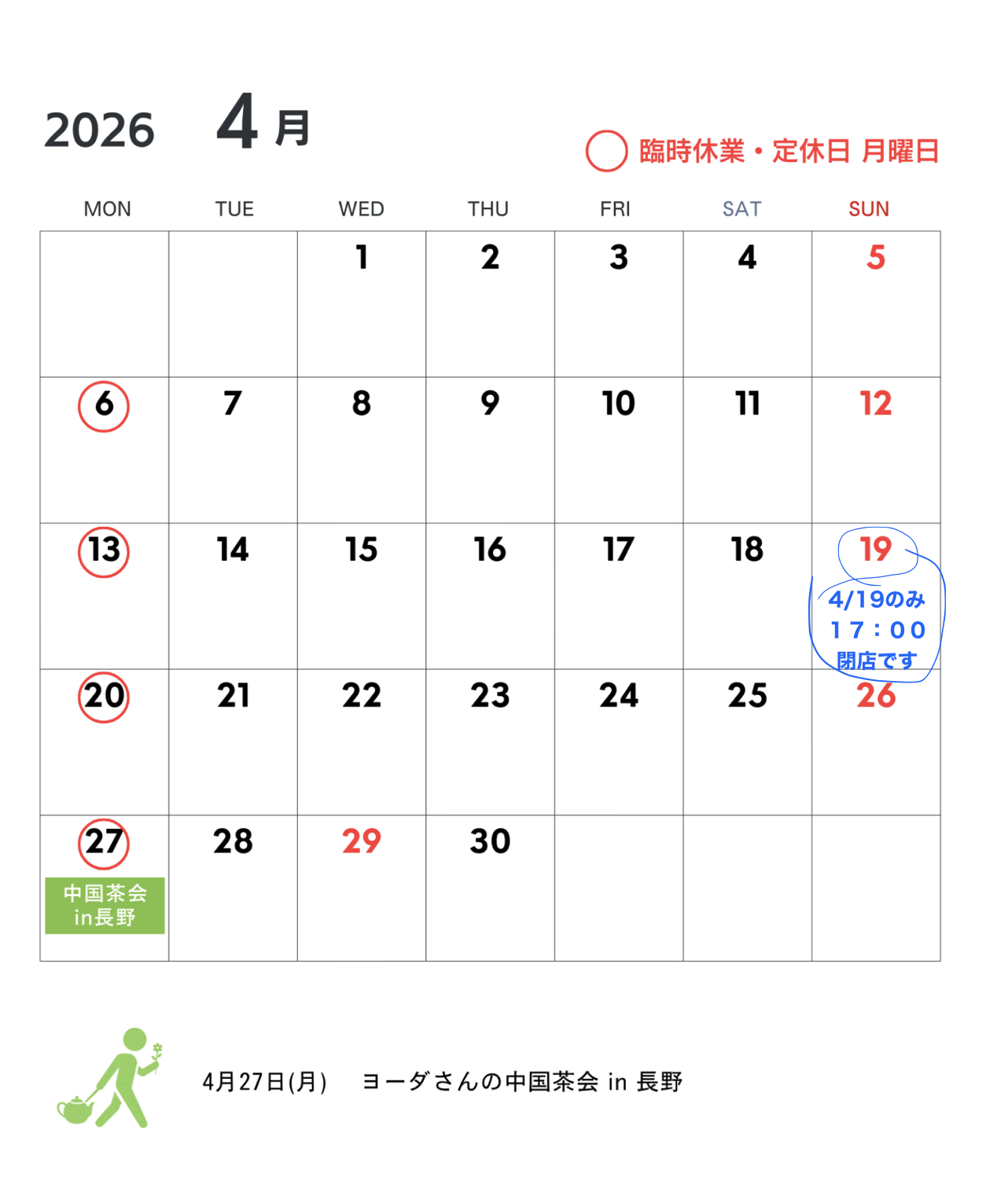 定休日: 月曜日